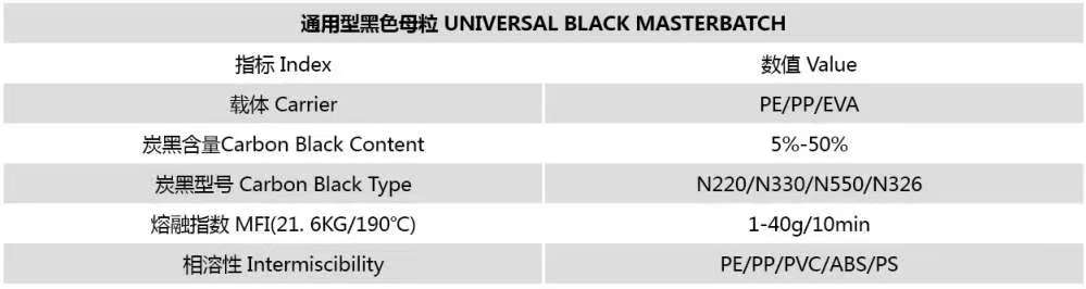 The general-purpose black masterbatch uses recycled PE and PP as carriers and economical carbon black as the main raw material to produce a series of black masterbatches with prices ranging from 2,000 yuan to 10,000 yuan. While meeting customer requirements, it also reduces product costs for customers.
